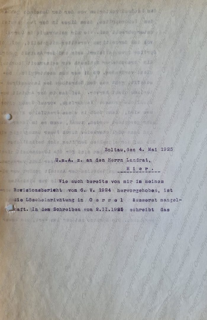 an den Landrat vom 4. Mai 1925 geht es um die mangelhafte