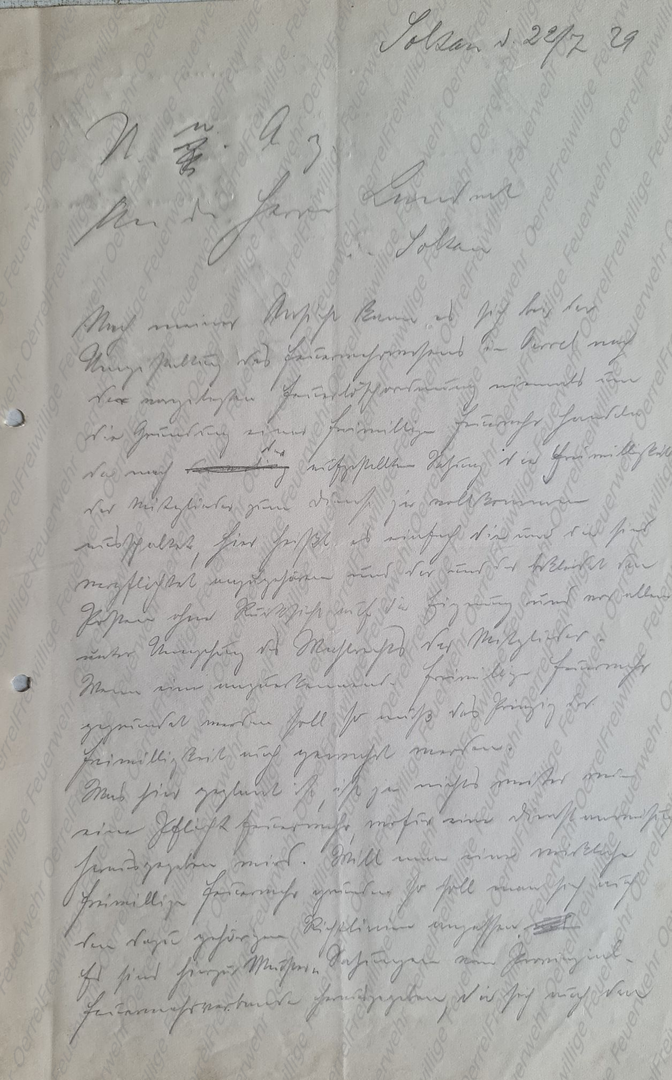 Der Einfachheithalber bitte ich einen Tag für die hiesige Feuerwehrübung festzusetzen, da Sie jedenfalls von Munsteraus hierüber kommen werden. An der Übung nehmen höchstens 10 Mann teil. Haehn