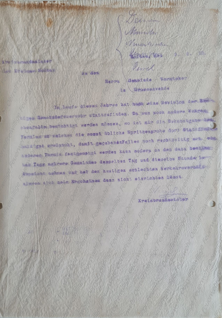 In dem Schreiben des Kreisbrandmeisters